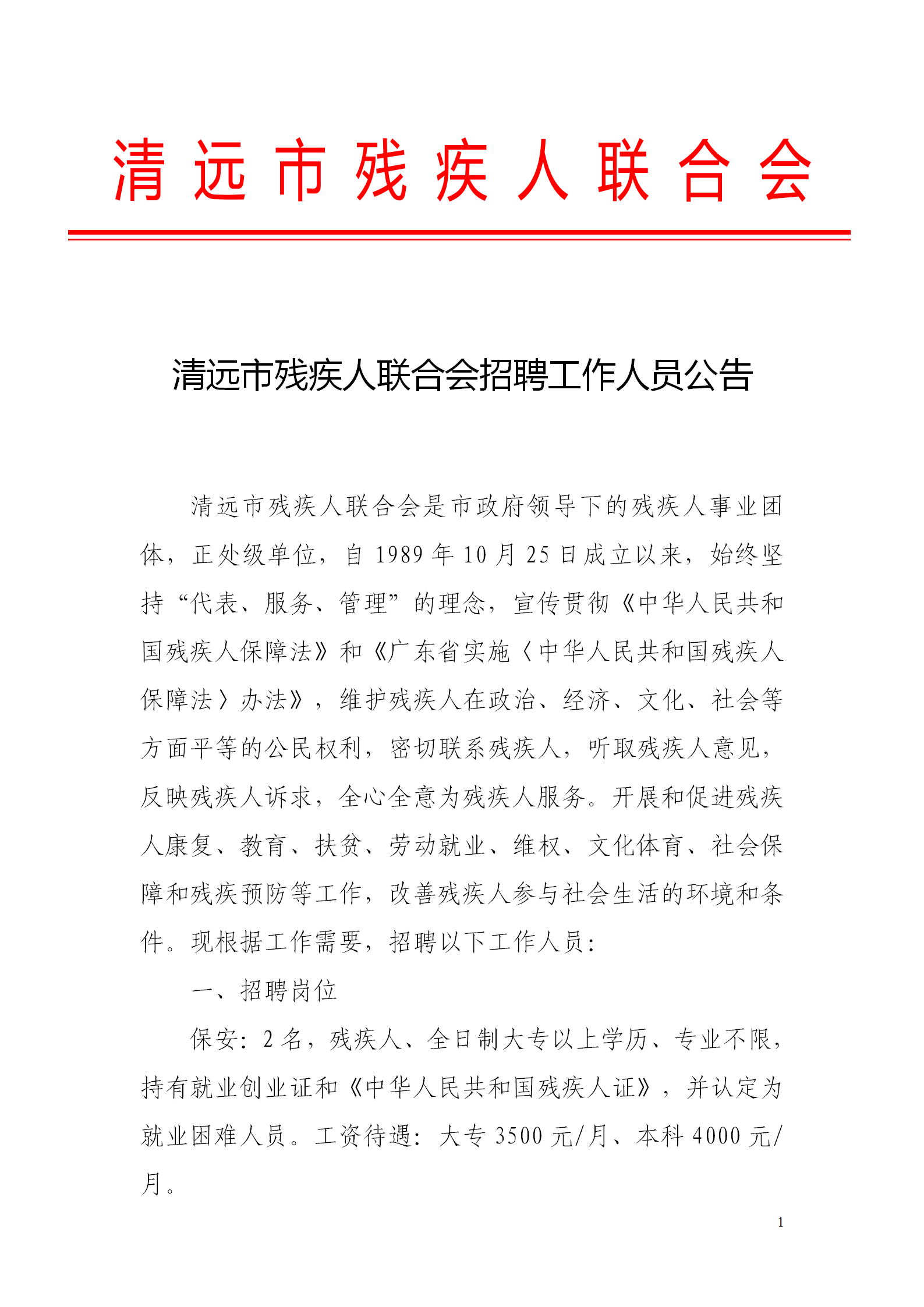 清遠(yuǎn)市殘疾人聯(lián)合會招聘工作人員公告